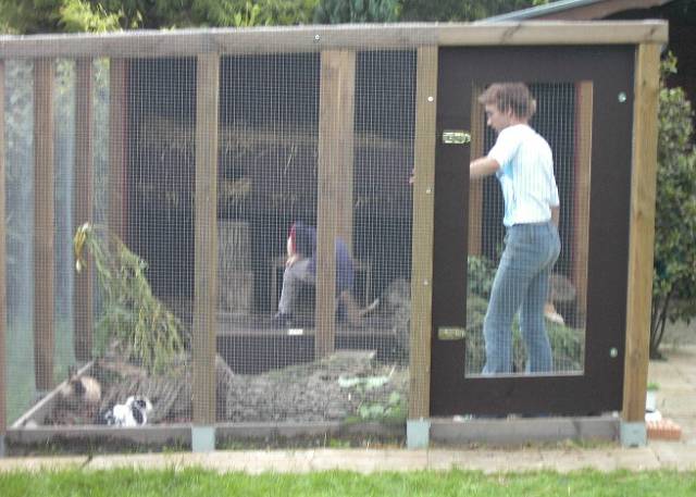 Entgegen vieler Annahme kann ich übrigens nicht im geringsten bestätigen, dass meine Kaninchen durch die Außenhaltung scheuer geworden sind.