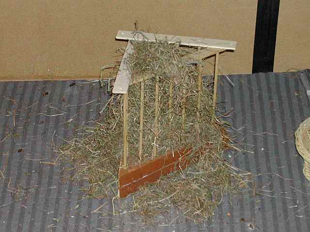 Da die meisten Tiere gern im Heu schlafen, wird natürlich immer auch Heu am Boden als Schlafplatz angeboten. Die Raufen dienen ausschließlich dem Zweck, dass jederzeit sauberes Heu im Gehege vorhanden ist.
