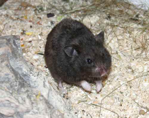 Herr GrabowskiEr war ein echter Spätaufsteher. Meist war er nicht vor 2 Uhr Nachts zu sehen. Aber wenn er dann mal wach wurde, wuselte er munter durch sein Gehege ... sammelte Futter ... lief ein paar Meter im Rad ... ging Sand baden ... sammelte Futter ... lief ein paar Meter im Rad ... suchte Nistmaterial ... räumte auf ... räumte um ... es war einfach schön ihm dabei zu zusehen.Er war eigentlich sehr verträglich und lieb und hatte wohl auch nichts gegen uns, aber er hatte auch nicht viel für uns übrieg. Wir waren seine Futterbringer, durften ihm Leckerchen und Frischfutter vor die Nase stellen und ganz manchmal krabbelte er auch am Arm noch - aber für mehr war er nicht zu haben. Er war erwachsen als er zu uns kam und er hatte zuerst große Probleme damit, viel Platz zu haben - sein großes Gehege hat ihn total überfordert. Mit der Zeit hat er aber doch das ganze Gehege in Beschlag genommen und wollte auch kaum mehr raus. Er konnte extrem übellaunig werden, wenn wir an sein Nest gegangen sind um dort aufzuräumen - da brachte er es wirklich fertig, sich aufzurichten und uns anzufauchen und durchaus auch mal anzugreifen. Darum musste er fürs Gehegeputzen ins Sandgehege ziehen. Er wird wohl unser letzter Goldhamster bleiben, es tut zu sehr weh, diese kleinen Wesen sterben zu sehen.