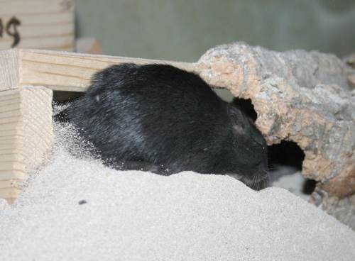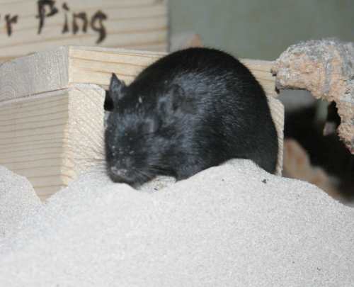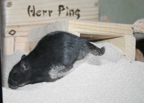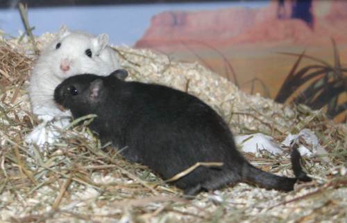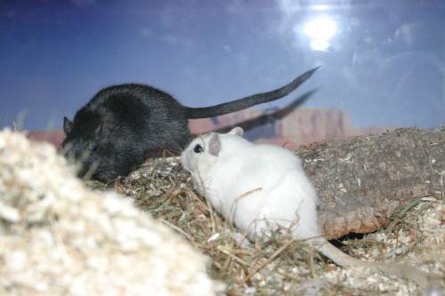 "Es ist ja nur für kurze Zeit, ich werde diese beiden Rennmäuschen sicher bald gut vermittelt haben. Außerdem brauchen sie ja nicht viel Platz, ein Aquarium 100 x 40 cm reicht aus.". Mit diesen Worten beruhigte ich meinen Ehemann, als ich die beiden Rennmausherren im September 2004 aus dem Tierheim mitnahm. Aber: von wegen die sind bestimmt leicht zu vermitteln. Ich mußte erfahren, dass ihre Farben gerade nicht "in" waren und die paar Interessenten die sich meldeten, wollten die Jungs in noch kleinere Aquarien stecken - und das, wo ich schon nach wenigen Tagen merkte, dass 100 x 40 cm viel zu klein für die beiden aufgeweckten Racker ist. Ergo sie bekamen im Laufe der Zeit noch zwei 100 x 40 cm Aquarien dazu und Niemand wollte sie aufnehmen und ihnen den gleichen Platz gönnen. Sie wuchsen uns auch schnell ans Herz. Vor allem Sparc war sehr neugierig, anhänglich, verspielt und putzmunter. Ich konnte ihm stundenlang zuschauen, wenn er im Sand badete, Nistmaterial sammelte, Kolbenhirsen zerlegte.... er war offen gestanden mein kleiner, schwarzer Liebling. Alpha hingegen wurde eher Saschas Favorit und diese Zuneigung gabs auf beiden Seiten.