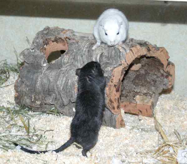 können sich dann bei Bedarf zurückziehen. Das Haus sollte die Mindestmaße 15 x 15 x 10 cm nicht unterschreiten. Es muss so im Gehege aufgestellt werden, dass es nicht herabstürzen kann, wenn die Renner darunter buddeln. Die Eingänge sollten einen Durchmesser von ca. 5 cm vorweisen, damit die Rennmäuse bequem durch passen.