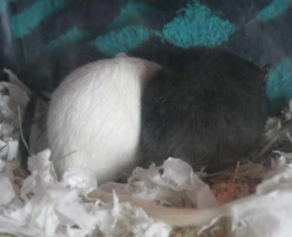 In den letzten Tagen waren beide Herren nach wie vor lieb zueinander, sie haben jedes neue Einrichtungsstück zusammen erkundet, schlafen viel und gern im gemeinsamen Nest und sind ansonsten emsig dabei, alles das zu tun, was eine Rennmaus eben so tun muss.