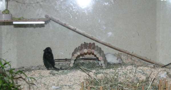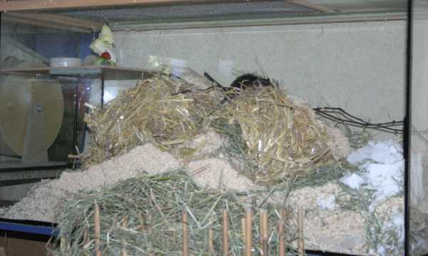 Meist schon nach kurzer Zeit wird es ruhiger in der Box. Die Tiere fangen an zu fressen, bauen ein Nest oder schlafen sogar schon zusammen. Dann dürfen sie zusammen in ihr Gehege ziehen. Wie es weiter geht, ist hier nachzulesen: Im Gehege.